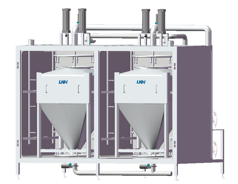 優(yōu)康恩自動化料系統(tǒng)用于對粉料和其它配料進(jìn)行乳化和水化的混料系統(tǒng)設(shè)備。其中真空混料機(jī)可在密閉真空容器下進(jìn)行高速剪切乳化混合綜合產(chǎn)品、各種粉末和液體等,每小時化粉量可達(dá)到3T-5T。優(yōu)康恩自動化料系統(tǒng)可利用真空作用將配料輸送到化料設(shè)備中,省去了操作工承擔(dān)這項繁重工作的需要。